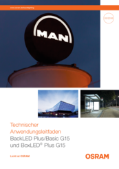 Bitte entnehmen Sie für Informationen zu den Produkten aus der Broschüre „Technischer Anwendungsleitfaden BackLED Plus/Basic G15 und BoxLED Plus G15". Speziell für das Produkt BackLED Plus DS G15 ist folgende Broschüre hilfreich: